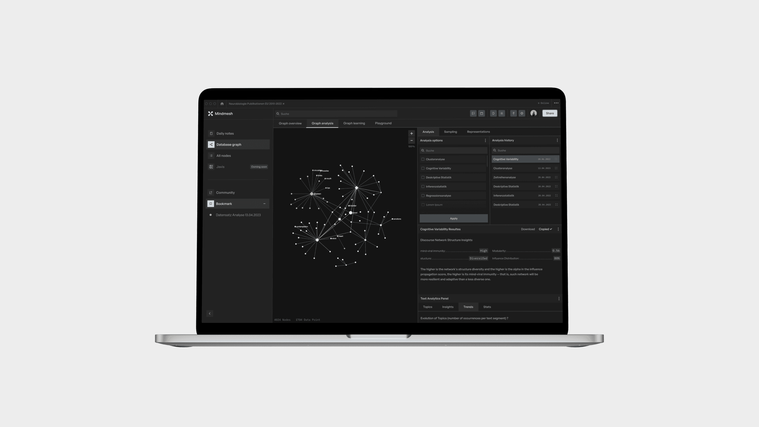 MindMesh analysiert Inhalte automatisch, erkennt Zusammenhänge und stellt Wissen kontextbasiert dar. Die Plattform kombiniert flexible Notizfunktionen mit intelligenter Suchtechnologie.