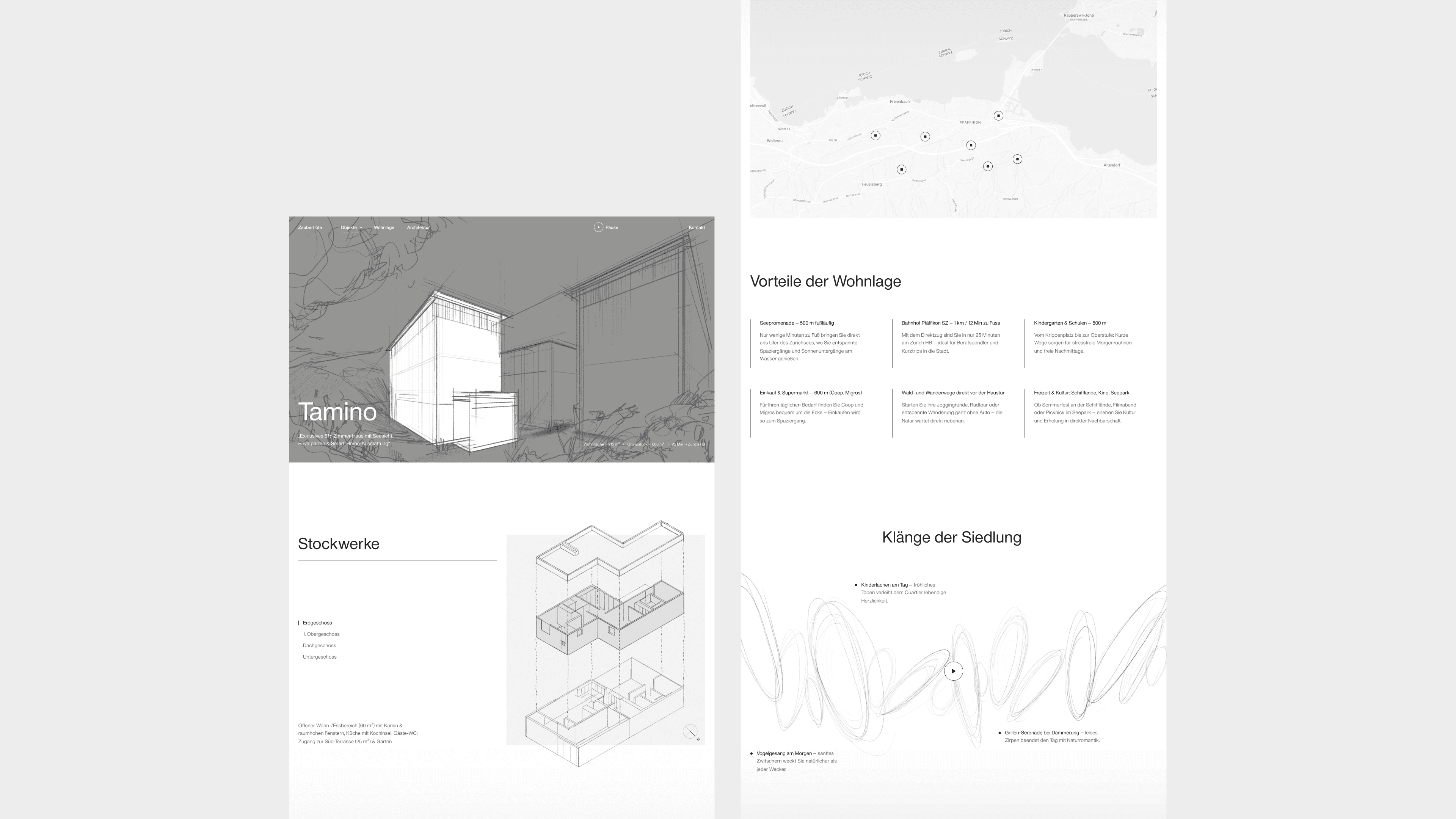 Für The Key haben wir mit «Zauberflöte Pfäffikon» eine klar strukturierte, moderne Verkaufswebseite für drei Einfamilienhäuser konzipiert und umgesetzt. Ziel war eine hochwertige Präsentation des Bauprojekts mit übersichtlich aufbereiteten Informationen und einer gezielten Führung durch den Verkaufsprozess. Die reduzierte Gestaltung, starke Visualisierungen und eine intuitive Nutzerführung vermitteln Architektur, Lage und Wohnqualität überzeugend.